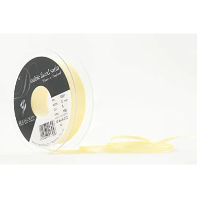 Berisfords Double Faced Satin Ribbon, Lemon, 3 mm Width, 100 metre Length