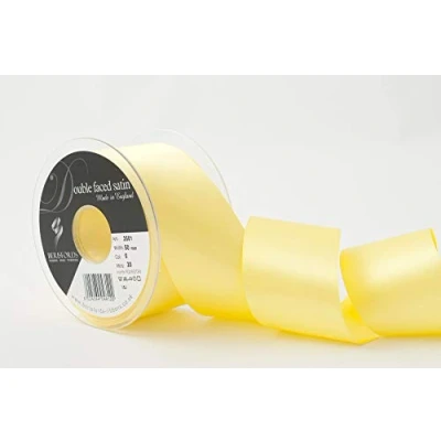 British manufactured ribbon 100% Polyester Fully machine washable Oeko-Tex certified Classic and versatile Made from 100 percent polyester yarn Fully Washable Lemon colour and also available in a broad range of other colours and patterns Measures 20m length x 50mm width