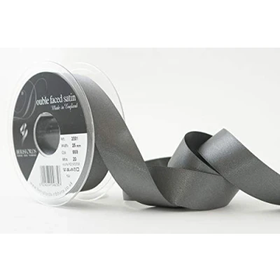 Berisfords Double Satin Ribbon, Smoked Grey, 25 mm