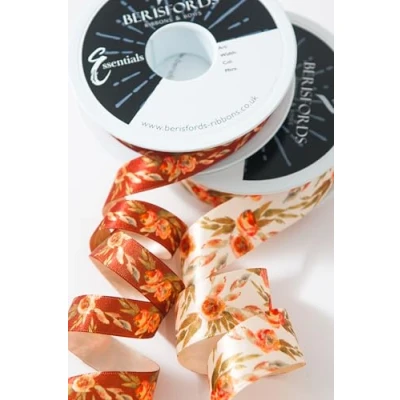 Berisfords high quality printed satin ribbon Woven in the UK using recycled yarns Available in two sizes and two different colour combinations Ideal for floral arrangements, wedding decorations, gift wrapping, crafting and so much more
