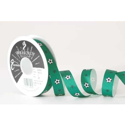 Berisfords Football Star Grosgrain Ribbon Green 16mm
