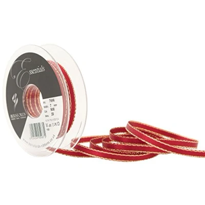 Berisfords Gold Edge Satin Ribbon, Scarletberry, 7 mm