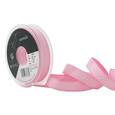 Berisfords Herringbone Woven Ribbon, Pink, 16 mm