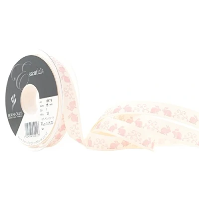 Berisfords Little Rabbit Ribbon, Natural/Pink, 15 mm Width, 20 metre Length