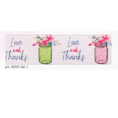 Berisfords Love & Thanks Ribbon, Polyester, White, One Size