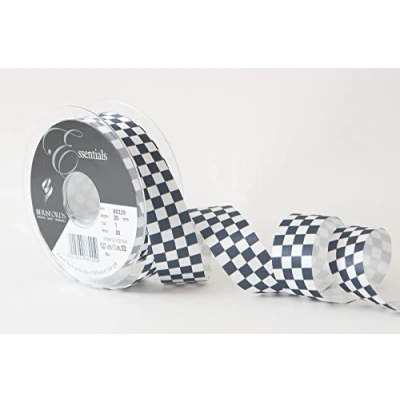 CHEQUERED FLAG Ribbon - 25mm x 20mtrs Ideal for gift wrapping, occassions, card making, crafts, decorations, clothing, florists, flowers, weddings 100% Polyester Ribbon Supplied on recyclable plastic reel