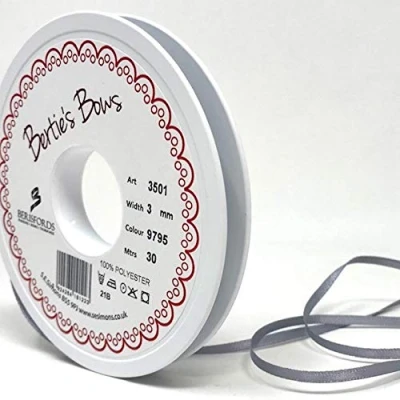 Berisfords Ribbon, Polyester, Grey, 30m x 3mm