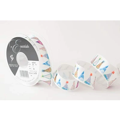 PARTY HATS Ribbon - 25mm x 20mtrs Ideal for gift wrapping, occassions, card making, crafts, decorations, clothing, florists, flowers, weddings 100% Polyester Ribbon Supplied on recyclable plastic reel