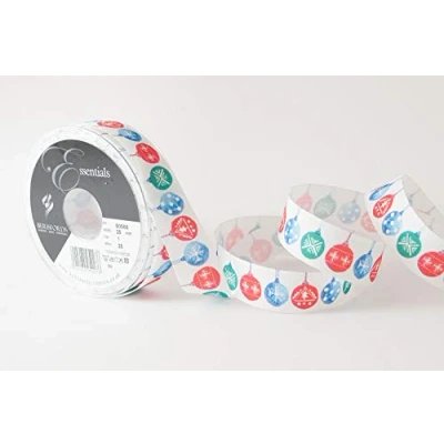 Baubles Ribbon, White/Multi, 25mm on a 25m reel Ideal for gift wrapping, occassions, card making, crafts, decorations, clothing, florists, flowers, weddings Supplied on recyclable plastic reel 100% Polyester Ribbon