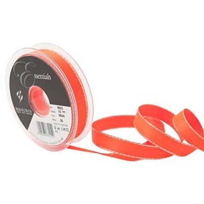 Berisfords Silver Edge Satin, Polyester, Flo Orange, 10.2 x 2.1 cm