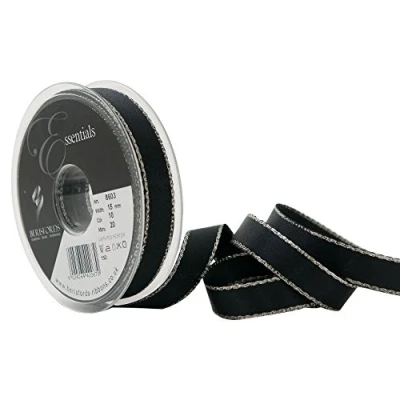 It satisfies the demand for a stylish, modern trimming Silver has become as strong a contender as gold It is frequently used for bridal accessories and gift packaging It comes in a black colour Ribbon measures 20 m length by 15 mm width