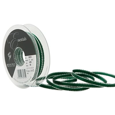 Berisfords Silver Edge Satin Ribbon, Hunter Green, 7 mm