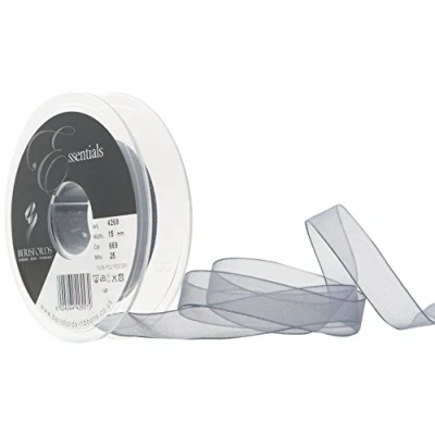 Berisfords Super Sheer Ribbon, Smoked Grey, 10 mm Width, 25 metre Length