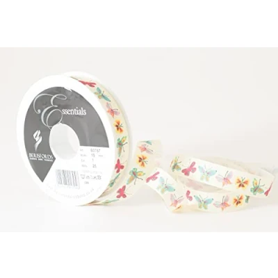 Berisfords Taffeta Spring Patterned Ribbon ‘Flutterby’ Multicolour on White 15mm Wide 25m Reel