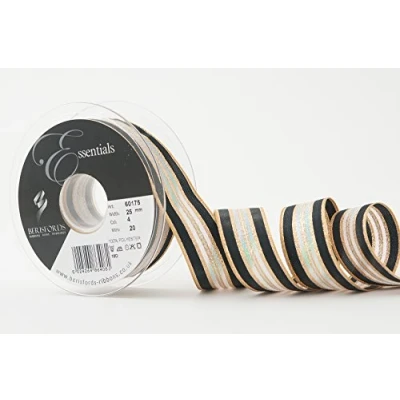 Berisfords Winter Stripe Ribbon, Dark Gold, 25 mm