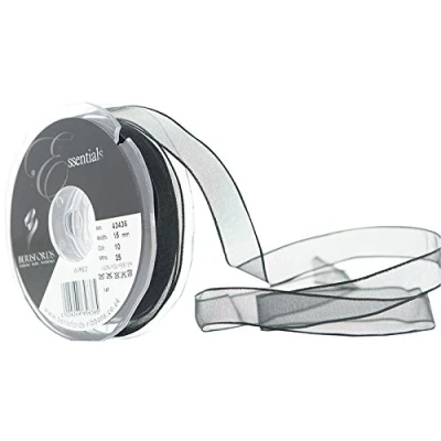 Berisfords Wired Sheer Ribbon, Black, 15 mm Width, 25 metre Length
