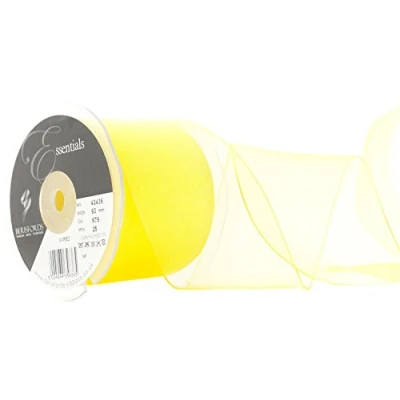 Berisfords Wired Sheer Ribbon, Yellow, 63 mm Width, 25 metre Length
