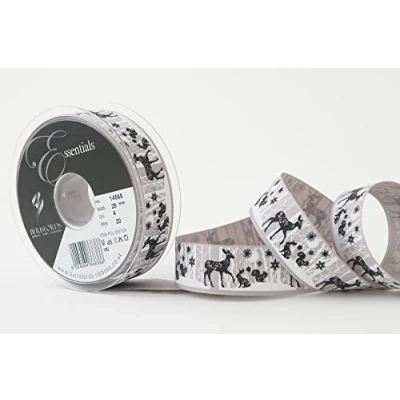 Berisfords Woodland Animals Ribbon, Grey, 25 mm