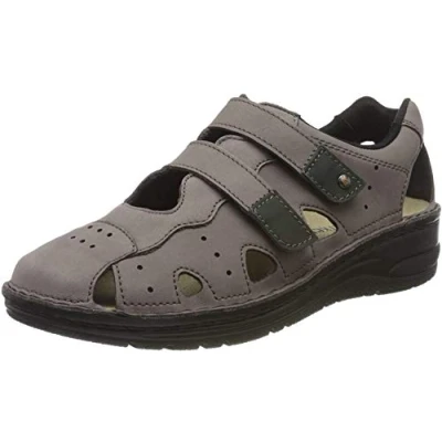 Upper material made of high-quality genuine leather Two straps with Velcro fasteners ensure comfortable entry and exit on one side and on the other side for a perfect fit Especially soft neoprene inner lining Genuine leather-covered interchangeable footbeds, which can be machine washed at 30°C or can also be easily replaced with orthopaedic insoles if required Modern comfort, airy lightweight women's shoe in trekking look