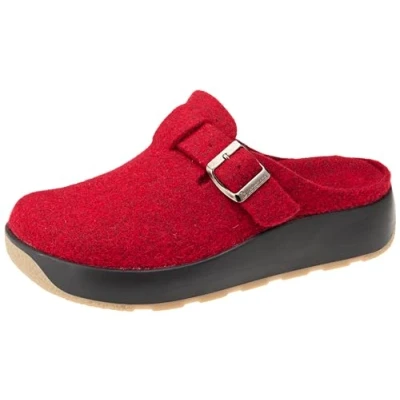 Outer material made of natural felt made of virgin wool with low synthetic fibre content Optimum foot climate with maximum heat retention Perfect hold thanks to adjustable straps with buckle Felt-covered removable footbeds, which can also be easily replaced with orthopaedic insoles if required Two-tone sole impresses with its modern design and effectively absorbs the performance energy due to the volume and its material texture