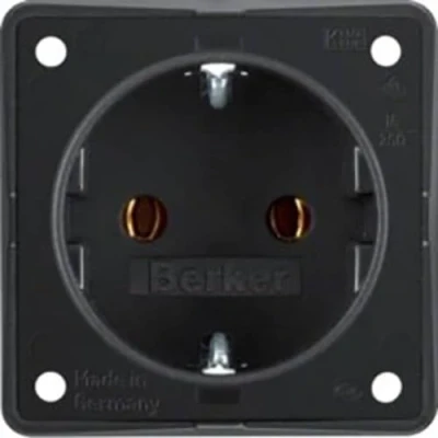 Design: Schuko Number of units: 1 Number of sockets can be switched = 0 Cover = central plate Imprint/labelling: without print, Manufacturer: Berker