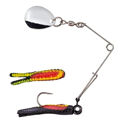 This genuine nickel plated blade beetle spin is simple and easy to use for the novice or avid angler Backed by a sticky-sharp hook and metal wire arms for a durable all-in-one fish catching package Its brightly colored safety-pin spinner is easily removed for a plain jig presentation Includes 4 beetle spins per pack; available in red belly with black yellow stripe color Measures 1-inch size with 1/32-ounce weight