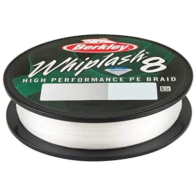 Berkley Whiplash 8 Braided Line Crystal 150m - Number of meters per spool: 150m - 100% PE material - Perfectly round braided - 8-strand construction - Super strong and extremely durable - Exceptionally smooth - Fast and long distance casting - Tough and hard-wearing - For use in fresh and salt water Berkley® Whiplash® 8 is a legendary line known as one of the strongest braided lines on the market! It is a perfectly braided 8-strand super line with 100% PE fiber. No matter if you are fishing the biggest freshwater or saltwater fish, you always have the extreme fighting power of Whiplash 8 to rely on.