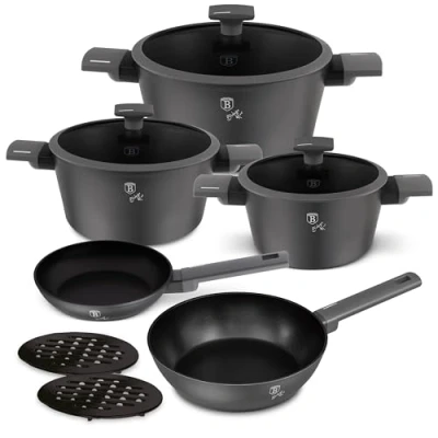 Berlinger Haus 10 Pcs Aluminium Non Stick Induction Cookware Set Pots and Pans with Lids for Home Kitchen Oven Dishwasher Safe, Eco Friendly Compatible All Stoves, Cooking