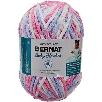 Bernat Baby Blanket is a luxuriously soft, chenille-style yarn that's perfect for baby blankets and garments. Gauge: 6 - Super Bulky, the big gauge makes projects fly by Crochet Gauge: 7 sc and 8 rows with a 8 mm (U.S. L/11) crochet hook Knitting Gauge: 8 sts and 13 rows with a 8 mm (U.S. 11) knitting needle Content: 1 ball of yarn 100% polyester 10.5 oz/300 g, 220 yds/201 m.Care: Machine wash and dry.Recommended for: Knit and crochet baby blankets, hoodies, toys, mobiles, snuggle sacks and more!