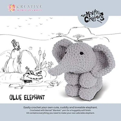 This Knitty Critter African Elephant Crochet Kit is designed by Mandy Cameron and includes all the materials you require to crochet an adorable elephant like Ollie and he makes the perfect gift or home décor item! Suitable for beginners, he's a must! Within this kit are easy to follow instructions, set out row by row in UK terminology and also includes certified high quality stuffing for a super soft, cuddly finish; don't let him over eat the stuffing though! KIT CONTENTS: Knitty Critter African Elephant Crochet Kit, 300g of Bernat Blanket Yarn, Several metres of black yarn for facial features, 8mm crochet hook, 5mm crochet hook, 200g of Stuffing, Pattern Your finished Knitty Critter should measure approx. 20cm x 30cm x 38cm and is dependent on your tension.