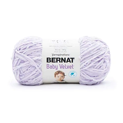 BERNAT-Baby Velvet The Bernat Baby Velvet yarn is a luxuriously soft worsted weight yarn that is perfect for nursery projects Its velvet texture doesn't pill or shed, creating machine washable projects that are a joy to stitch From blankets to booties, you can get creative with knit and crochet patterns using this yarn Weight category: 4. Content: 100% polyester. Putup: 10.5oz/300g, 492yd/450m. Gauge: 16sx14r = 4in/10cm on size US7/4.5mm knitting needles. Suggested crochet hook: USH8/5mm. Dyelotted: we try but are not always able to match dyelots. Machine wash and dry. Comes in a variety of colors. Each sold separately. Imported.