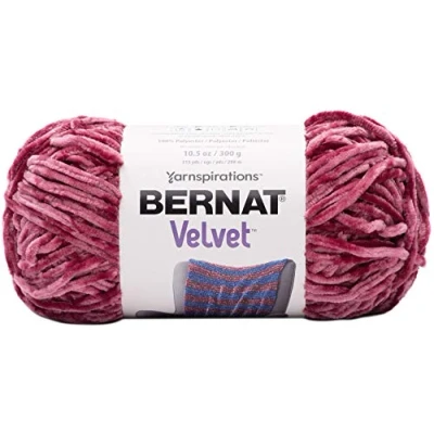 Bernat-Velvet Bernat Velvet is an eye-catching yarn that works up into lush, velvety knit and crochet projects Featuring a beautiful shine and classic shade range, Velvet is a soft choice for blanket and pillow projects for your home Weight category: 5 Content: 100% Polyester. Putup: 10.5oz/300g, 315yd/288m. Gauge: 12 stsx17r = 4in/10cm on size US10.5/6.5 mm knitting needles. Crochet Tension: 10scx11r on USK/6.5 mm crochet hook. Dyelotted: We try but are not always able to match dyelots. Care: Hand wash, dry flat. Comes in a variety of colors. Each sold separately. Imported.