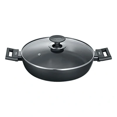 Unique cooking experience: whether vegetables, meat, fish, rice dishes or other delicacies, the Berndes large serving pan offers plenty of space, advanced technology and easy handling. High rim: the 7.5 cm high rim of the serving pan provides a capacity of 3.5 litres and is therefore suitable for frying, cooking, stewing and serving your delicious dishes. Non-stick coating: the aluminium pan impresses with its effective non-stick coating. This allows for low-fat and healthy preparation of your delicacies as well as easy cleaning - even on the outside. Advanced technology: the aluminium induction series is suitable for all types of cookers. It is particularly powerful and efficient thanks to the innovative Berndes technology for induction hobs. It offers optimal heat distribution and saves energy.