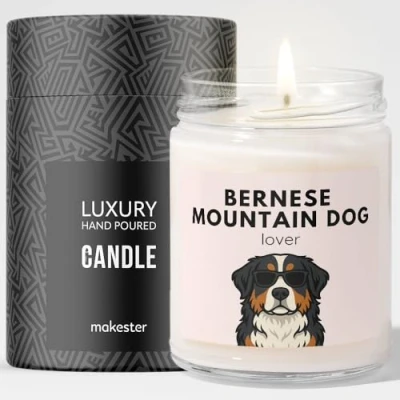 Bernese Mountain Dog Gifts Luxury Soy Wax Candle Vanilla, Jasmine, Sugared Almond Dogs in Shades Makester