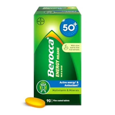 Berocca 50+ Multivitamin & Mineral Tablets with Olive Leaf Extract 13 Vitamins 9 Minerals 90 Film Coated