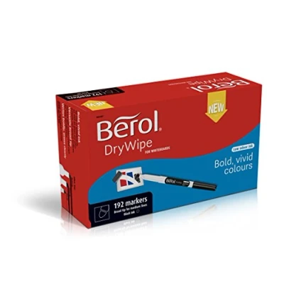 Berol Dry Wipe Whiteboard Marker Pens Broad Tip Black Low Odour Ink 192 Erase Markers