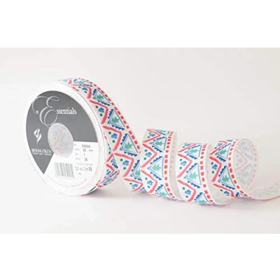 Nordic Tree Ribbon, White/Multi, 25mm on a 25m reel Ideal for gift wrapping, occassions, card making, crafts, decorations, clothing, florists, flowers, weddings Supplied on recyclable plastic reel 100% Polyester Ribbon