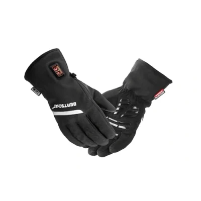 BERTSCHAT® has designed a new PRO cycling glove that will protect you from the cold during your bike rides. The updated cycling gloves have new feautures: you can now check your battery level at any time thanks to the battery indicator on the power button. And with the new advanced anti-slip materials on the palm of the glove, you have improved and more grip. In addition to being windproof and waterproof, these cycling gloves feature the unique Dual Heating technology. Therefore, both sides of the hand are heated. Battery and mechanism Three different battery options are available: * Regular: This standard battery pack consists of two 3.000 mAh batteries. It allows you to heat for up to 8 hours*. * Strong: The most popular battery pack contains two powerful 3.800 mAh batteries. The higher capacity allows you to heat for longer, with a maximum heating time of 10 hours*. * Extreme: Do you want to be worry-free on the road and get the most out of your product? Then choose our most powerful battery pack. It contains 2 extremely powerful 4.000 mAh batteries that will provide your product with energy for up to 11 hours*. *Heating duration is an estimate. The final heating duration depends on several factors, including the heat setting and ambient temperature. Activating both heating zones? Then the Dual Heating model uses twice as much energy, which reduces the heating duration. Battery indicator: Want to know how much energy is left in your battery at all times? You can check the battery status at any time by pressing the on/off button on the device. You can also choose to order an extra battery pack, so you can heat non-stop. The batteries are USB rechargeable, so that you can easily recharge them in your car/motorbike or on the road using a power bank. Always at the ideal temperature Both sides of the hand are independently heated and adjustable at different intensities. They have three different heat levels, allowing you to always set the appropriate temperature. Simply press a button to adjust the desired temperature. The heating wires extend all the way from the wrist: going from the palm to the fingertips and from the back of the hand to the fingertips. High-quality material This PRO edition from BERTSCHAT® is equipped with a water-repellent and windproof layer, allowing you to enjoy warm hands even in the rain. The cycling gloves are flexible for easy gear manipulation. Thanks to the additional protection on the palm, you’ll always have an excellent grip on the handlebars. Inside, the gloves are equipped with a breathable HIPORA® membrane. This is a waterproof and breathable layer that prevents water from entering the gloves while allowing moisture from the inside to escape, keeping your hands dry. Looking for gloves with more insulation? Check out the entire range of heated gloves (https://www.bertschat.co.uk/collections/heated-gloves) or all heated cycle gloves (https://www.bertschat.co.uk/collections/heated-cycle-gloves) here. Features: * Includes two rechargeable batteries (7,4V - 3.000, 3.800 or 4.000 mAh) and charger. * Battery indicator * Two large heating elements covering the entire hand, including fingertips - Dual Heating * Wind & Waterproof Layer * Hipora® waterproof and breathable membrane. * Touchscreen compatible: you can use your phone/tablet with the cycling gloves. * USB- rechargeable * Extra protection for optimized grip. * Waterproof zipper with lockable compartment for batteries. * Smooth: ideal for operating your bike/scooter. * Up to 11 hours of heating on a single charge * Unisex model