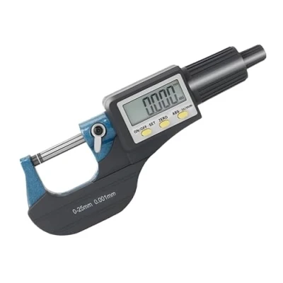 Measuring range: large measuring range at 0-25 mm (1") and the resolution is 0.001 mm (0.00005") Spindle diameter 6.5 mm, hardened stainless steel locker LCD screen: LCD with electronic digital display, easy to read. 3V button battery: One CR2032 lithium battery, high capacity, safe and long service life mm / inch conversion / zero position at each position / incremental or absolute measurements. Metric and inch conversion operation: long press the button for 2-3 seconds to switch