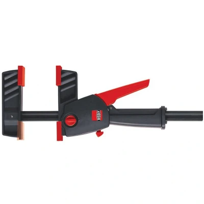 General description The Bessey DUO16-8 DuoKlamp is a versatile one-handed clamp designed for both clamping and spreading tasks. With a clamping force of up to 1,200N and an opening width of 160mm, it provides powerful performance while allowing for easy operation in tight spaces. The innovative design enables quick switching between clamping and spreading without the need for additional tools, making it ideal for various woodworking and DIY applications. Technical specifications Clamping force: up to 1,200N Maximum opening width: 160mm Throat depth: 85mm Spreading range: 75-235mm Dimensions: Height: 50mm, Width: 155mm Rail dimensions: 20 x 5mm Weight: 0.51kg Compatibility and accessories Suitable for various woodworking and DIY applications Features a rotating switch for easy switching between clamp and spacer functions Installation No specific installation required; designed for immediate use Usage Use the ergonomic handle with a parallel pumping lever for controlled operation