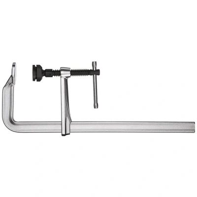 General description The Bessey SG25M Heavy-Duty All-Steel Screw Clamp is designed for high-performance clamping in demanding environments such as steel and boiler construction, shipbuilding, automotive engineering, and heavy timber construction. With its robust construction and high clamping pressure, it ensures secure clamping of sturdy or heavy parts. Technical specifications Clamping force: up to 12,000N Tightening torque: 40Nm Opening: 250mm Throat depth: 140mm Rail dimensions: 34 x 13mm Weight: 2.58Kg Usage The Bessey SG25M clamp is ideal for various applications where strong and secure clamping is required, including: Steel and boiler construction Shipbuilding Automotive engineering Heavy timber construction Laminated wood beam construction Carpentry Other information Fixed bracket and pressure plate are produced and tempered from a single piece for maximum tensile strength and sturdiness. Special tilting pressure plate can tilt up to 35° for clamping on angled or sloping
