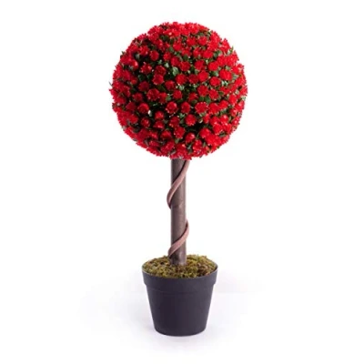 Best Artificial 2ft 60cm Rose Ball Tree Plant Garden Office Conservatory Tropical Indoor Outdoor (Red)