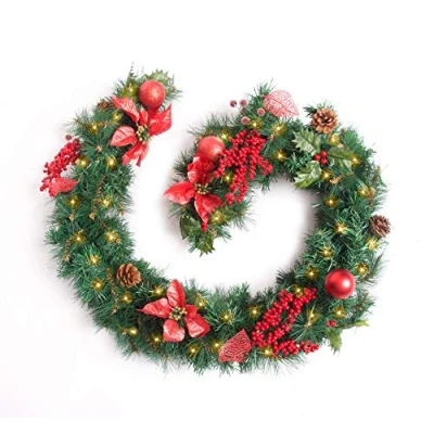 Best Artificial 6ft Red Decorated Christmas Garland with 50 Warm White LED Battery Lights
