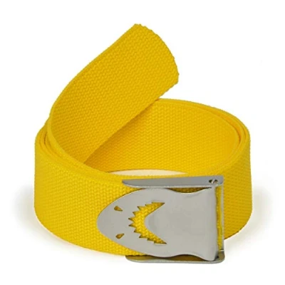 Woven ribbon belt made in Italy a production Best Divers High strength tape for use with ballasts and pedagns Color: Yellow Shark stainless steel buckle Dimensions: 50x1500 mm