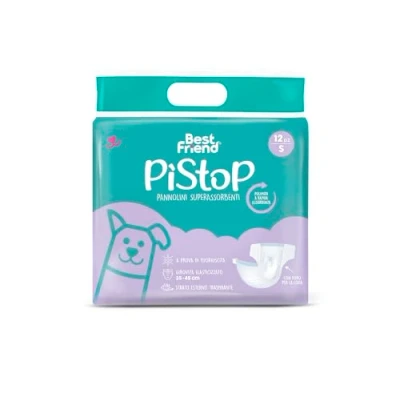 Best Friend Disposable PìStop Nappies for Dogs. panties with super absorbent polymers. Excellent fit and hold adhesive closure S, waist size 35 45 cm. Pack of 12