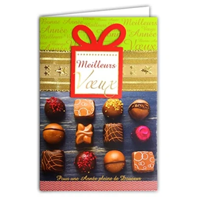 Best Greeting Card Happy New Year Full of Sweetness Gold Star Ribbon with Envelope Collage Paper Gift Embossed Chocolate Christmas Wishes Wonderful Holiday Eve 61 4087 B BA