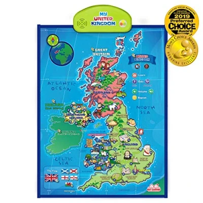 Creative Child Prefferred Choice & Mom's Choice Gold Medal Award Winner! The most popular interactive smart educational talking UK map. Newly improved by adding a fabric frame for higher quality. Great cool gift idea for boys and girls, or even in classrooms. Learning has never been so much easy and fun. Hang on a wall, play on the floor or use as a colorful play mat. Over 300 facts and questions about the UK. Also with all sorts of different fun questions and test your knowledge in the quiz mode. Skills learned include concentration, earth science, memory, problem solving, geography and environment. 100% ENGAGING, 100% FUN, 100% RISK - FREE! Requires 3 AAA batteries (included); intended for Kids, Preschoolers and early learners of ages 5 and up., Manufacturer: Best Learning Materials Corp.