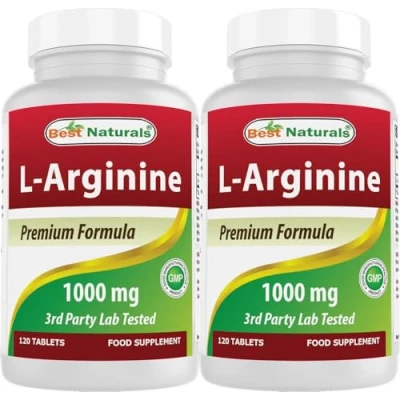Best Naturals L Arginine 1000 mg 120 Tablets Pharmaceutical Grade (2 Bottles)