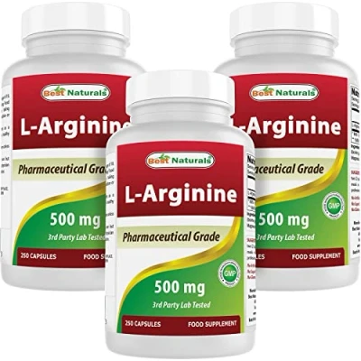 Best Naturals L Arginine 500mg 250 Capsules (250 Count (Pack of 3))