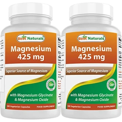 Best Naturals Magnesium 425 mg 180 Veggie Capsules High Absorption Glycinate & Oxide Chelated, Non GMO, Gluten Free Muscle Relax (180 Count (Pack of 2))